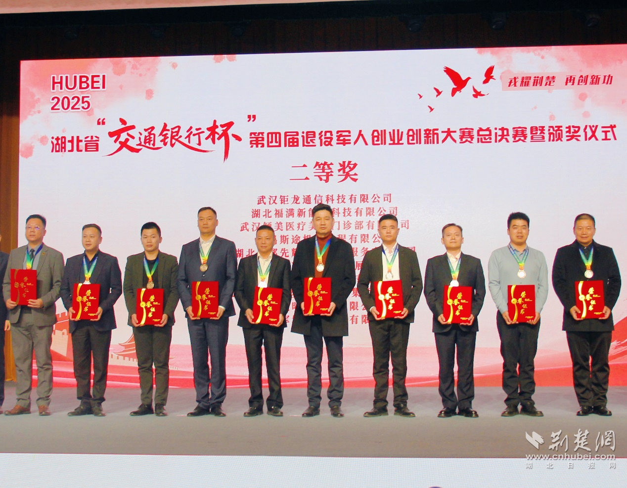 赵涛(左五)荣获第四届退伍军人创新创业大赛第二名。图片提供:肖慧婷